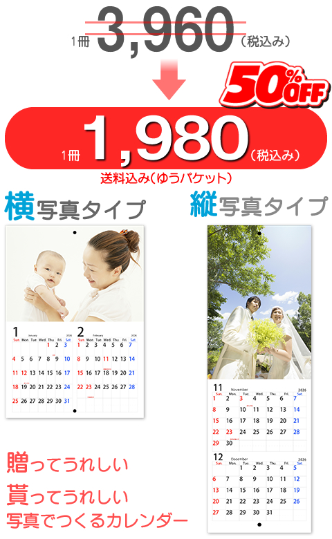 写真館がお届けする、高級写真印画紙を使用した写真カレンダー